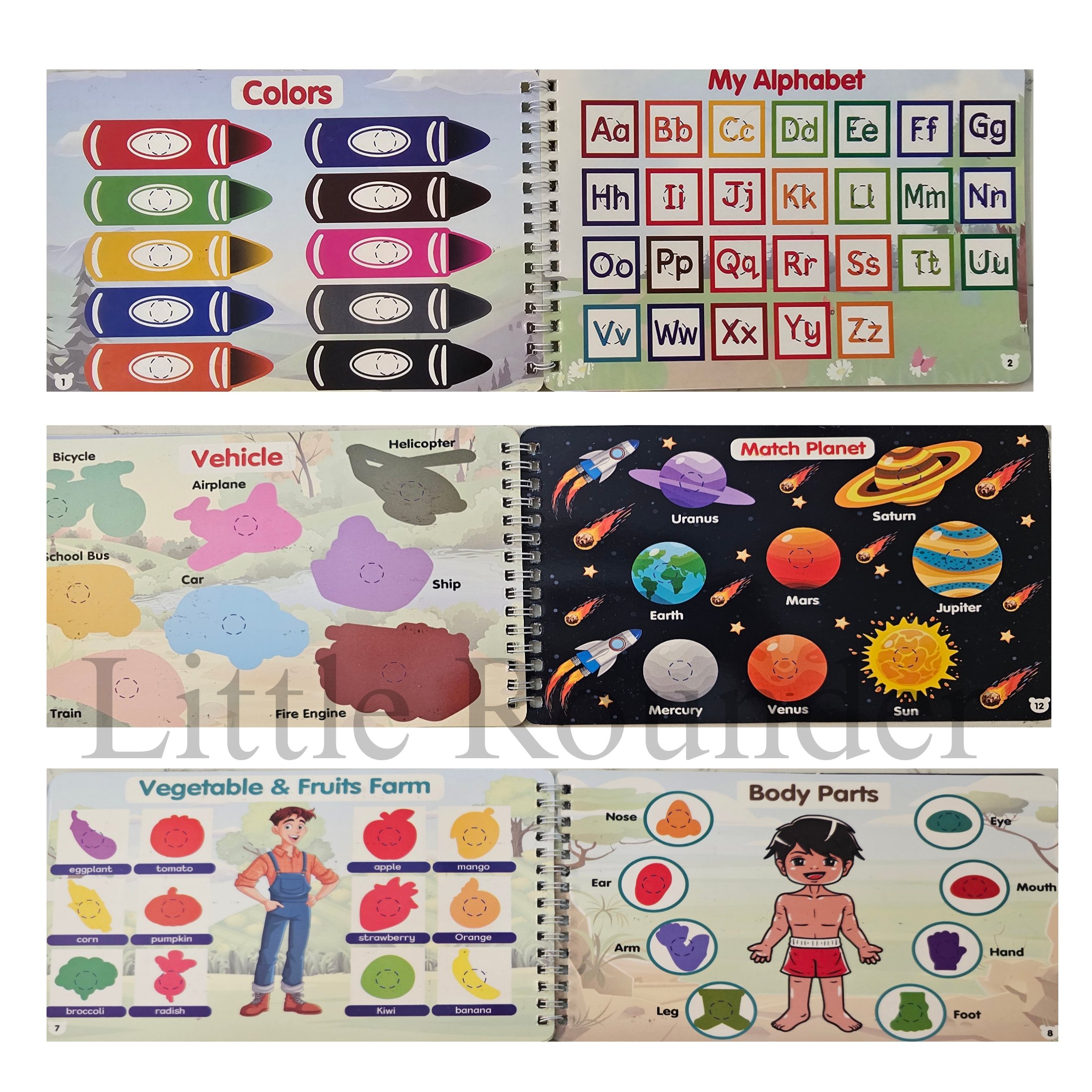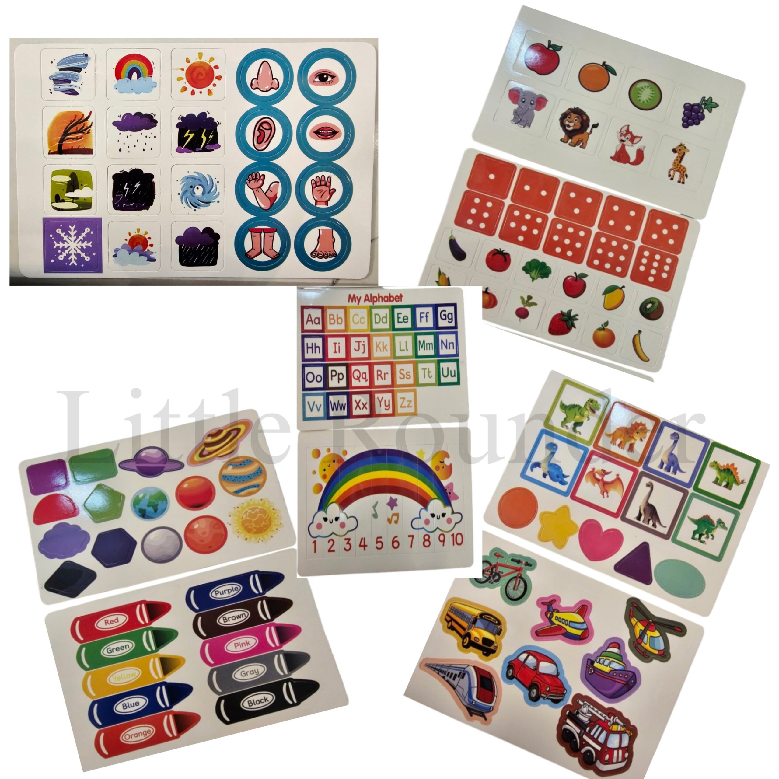 Early learning busy book with removable Velcro pieces; promotes fine motor skills, color & number recognition; suitable age 2–6.