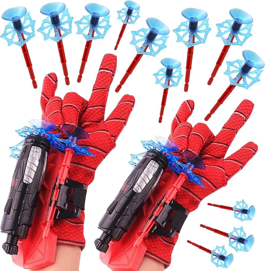 • Pack of 2 includes 2 Spider Gloves, 2 Launchers, 2 Bullet Holders, and 4 Sucker Darts